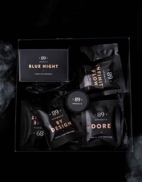 Auto õhuvärskendaja ja populaarsed Aromatic •89• lõhnad on pakendatud luksusliku välimusega karpi, nii et komplekti saabumine on veel üks paljudest elegantsetest elamustest!