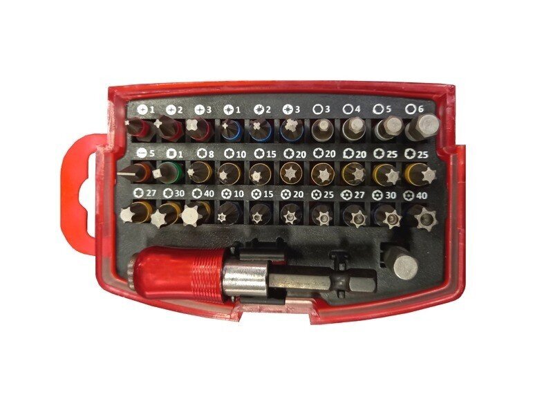Enamlevinud otsikud ja kiirkinnitusega 1/4" adapter ühes käepärases komplektis. Karbis on iga otsik kiiresti ja mugavalt tuvastatav. 32-osa, vööklambriga karp.